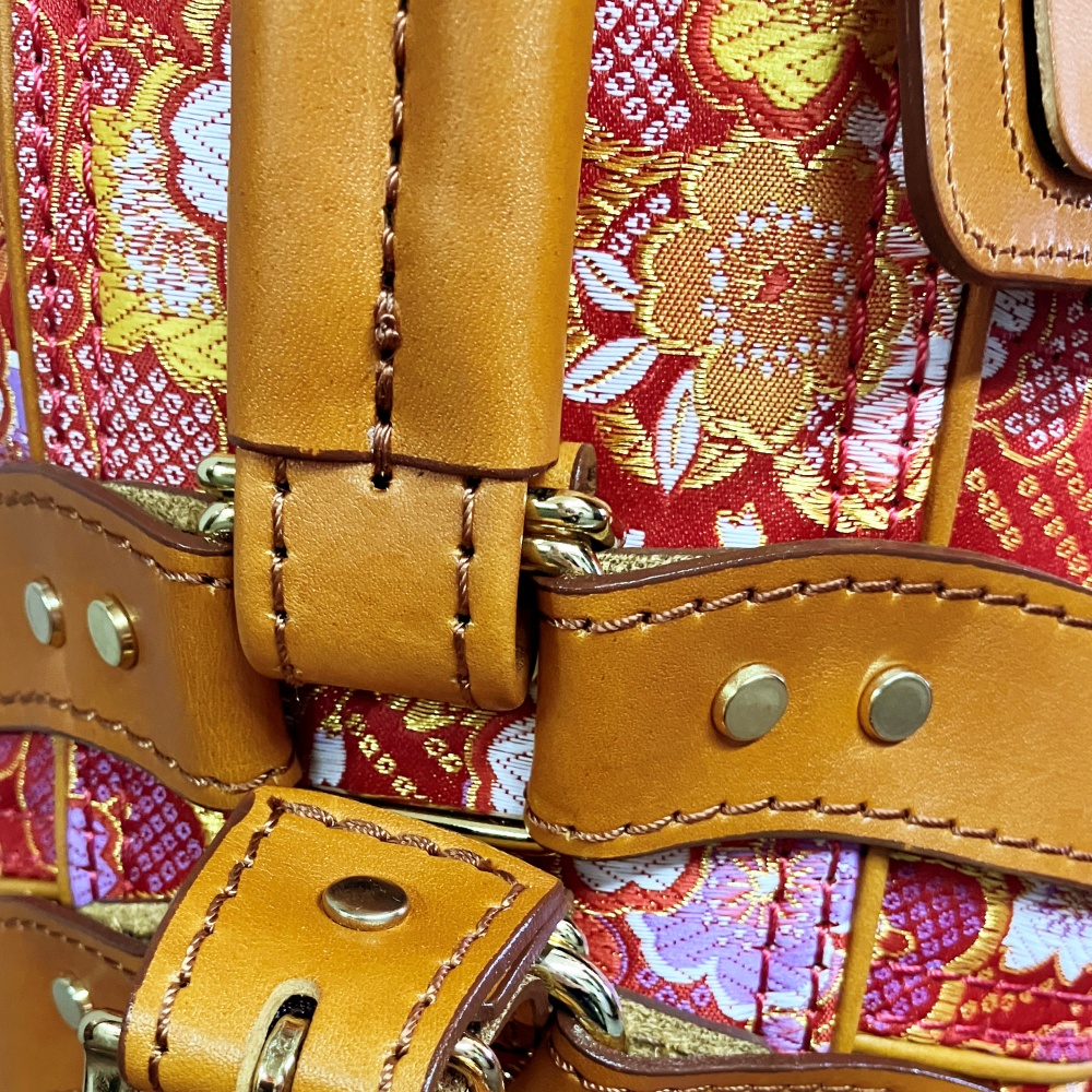 日本の伝統的な西陣織の布地を採用して1個1個手で丁寧に造り上げられた超貴重なゴルフバッグです。布地の使う場所が異なる他、皮なども量産できない為に全く同じモノは2個と無いオンリーワンのゴルフバッグとなります。