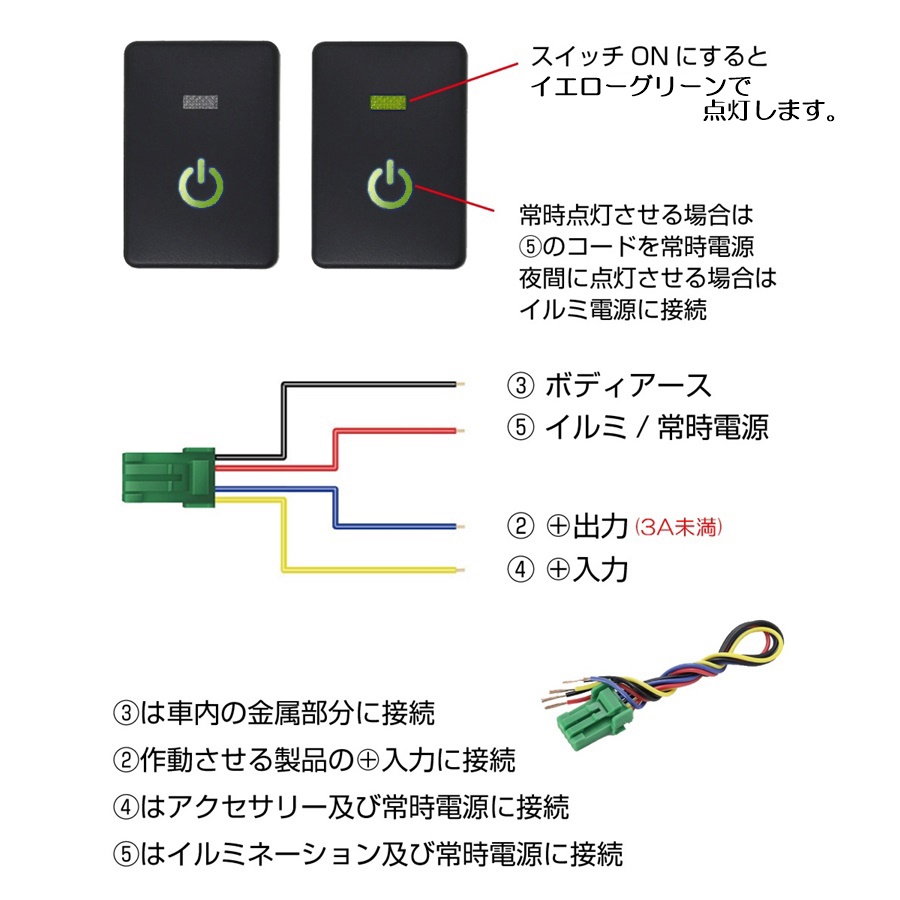 例えばFOGランプを追加したり、室内照明を演出したりと後付けで電子機器を取り付けた際にスイッチ制御する必要がありますが、純正インテリアの美観を損なわせない為にも空きポートを利用してビルトインする事が流行しております。(電流は3A未満となりますので制御する為のスイッチです。直接の電流負荷には耐えられませんのでご注意ください。)