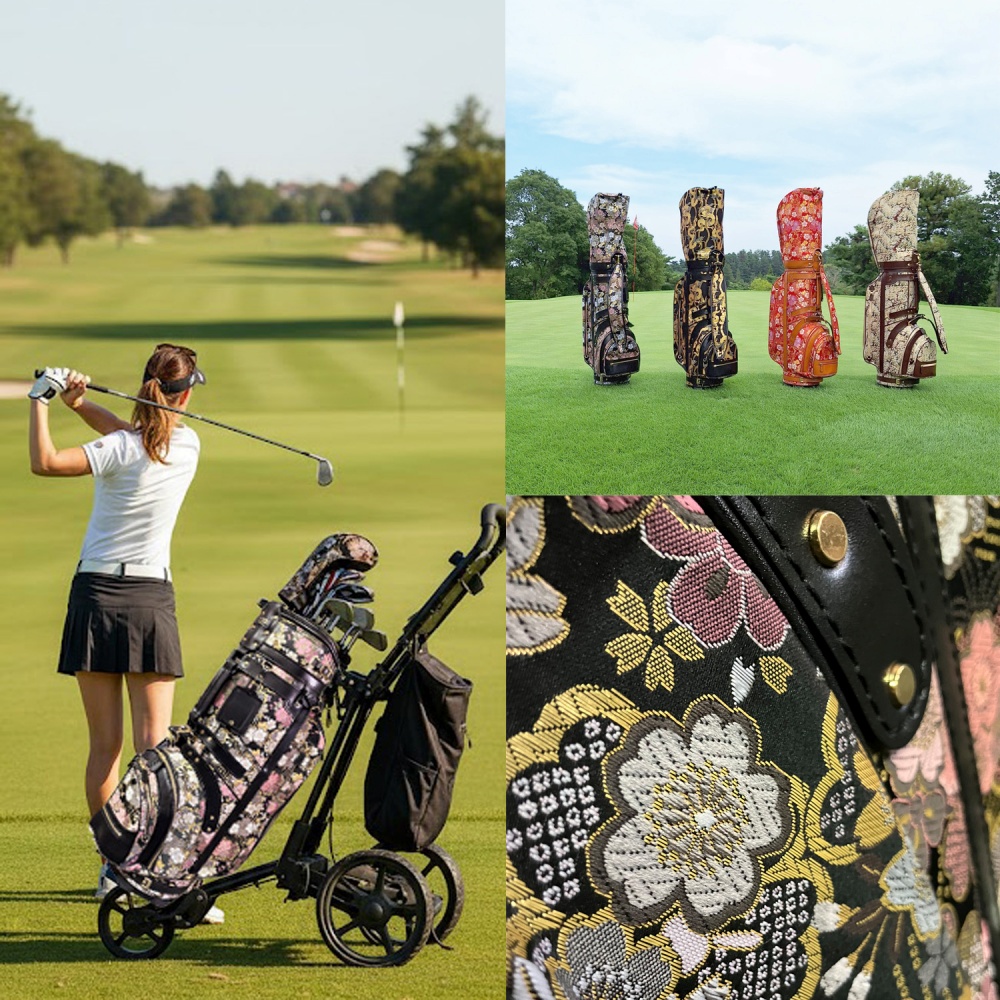 日本の伝統的な西陣織の布地を採用して1個1個手で丁寧に造り上げられた超貴重なゴルフバッグです。布地の使う場所が異なる他、皮なども量産できない為に全く同じモノは2個と無いオンリーワンのゴルフバッグとなります。