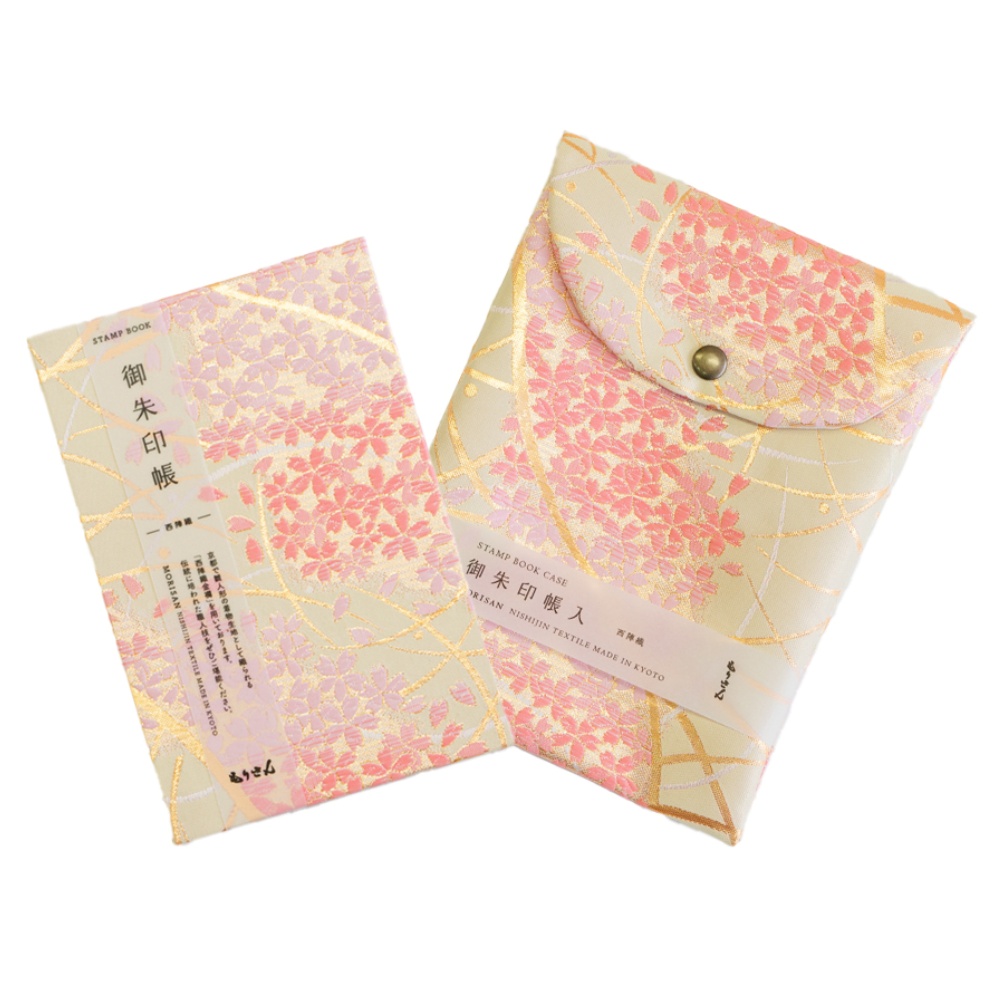 日本の伝統的な西陣織の布地を採用して1個1個手で丁寧に造り上げられた御朱印帳と収納袋です。御朱印帳の生地と同柄にて収納袋をご用意しております。