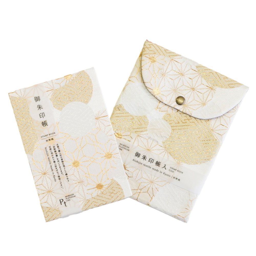 日本の伝統的な西陣織の布地を採用して1個1個手で丁寧に造り上げられた御朱印帳と収納袋です。御朱印帳の生地と同柄にて収納袋をご用意しております。