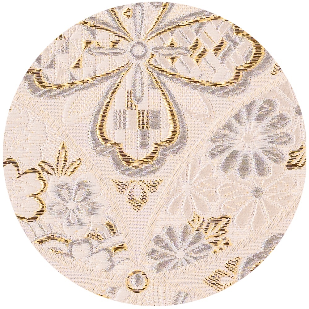 使用している西陣織の布地柄も人気の品となります。西陣織および製造は京都の老舗織元「株式会社もりさん」が請け負います。※もりさんは全国のひな人形司、仏具師の方々からも依頼を受けている西陣織金襴の織元です。有名な人形の多くにもりさんの西陣織金襴が使われております。