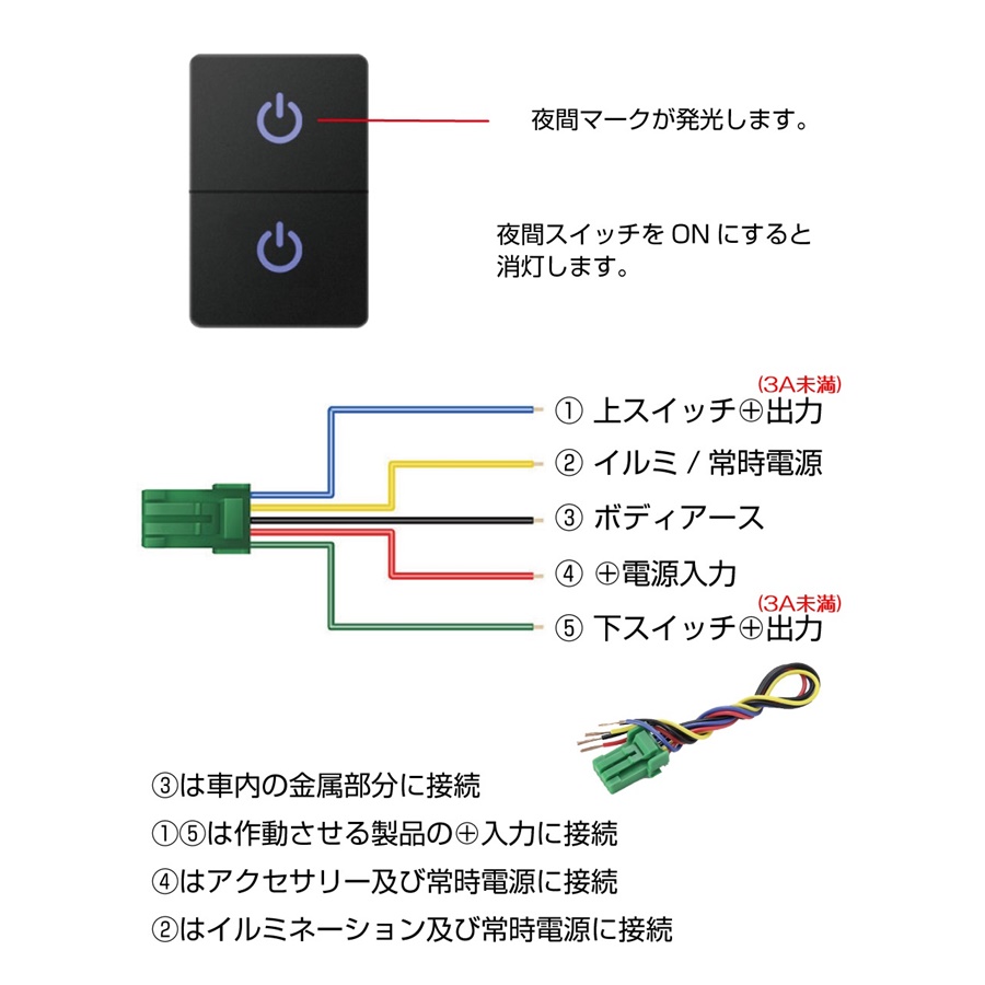 一つのポートで2系統のスイッチが使えるダブルスイッチとなります。スペースを有効活用できます。(電流は3A未満となりますので制御目的のスイッチです。直接の電流負荷には耐えられませんのでご注意ください。)