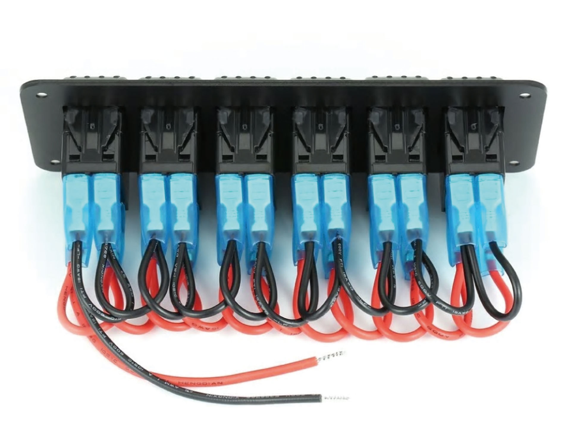 キャンピングカーやキッチンカ―、レーシングカーなどのパーツとして便利なアイテム。複数のスイッチを集中してセットできるパネルタイプとなります。