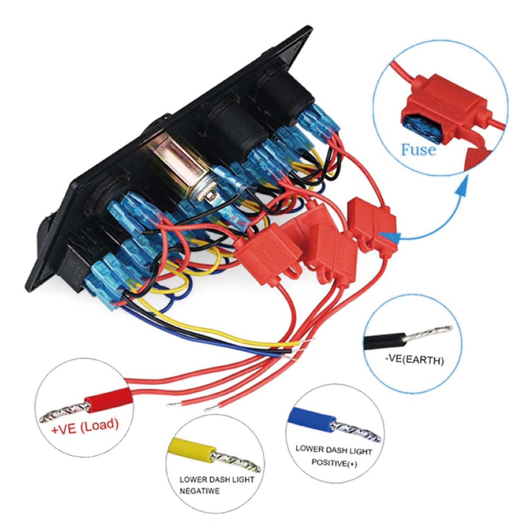 キャンピングカーやキッチンカ―、レーシングカーなどのパーツとして便利なアイテム。複数のスイッチを集中してセットできるパネルタイプとなります。