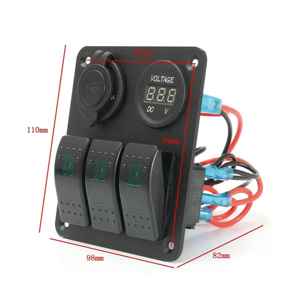 キャンピングカーやキッチンカ―、レーシングカーなどのパーツとして便利なアイテム。複数のスイッチを集中してセットできるパネルタイプとなります。