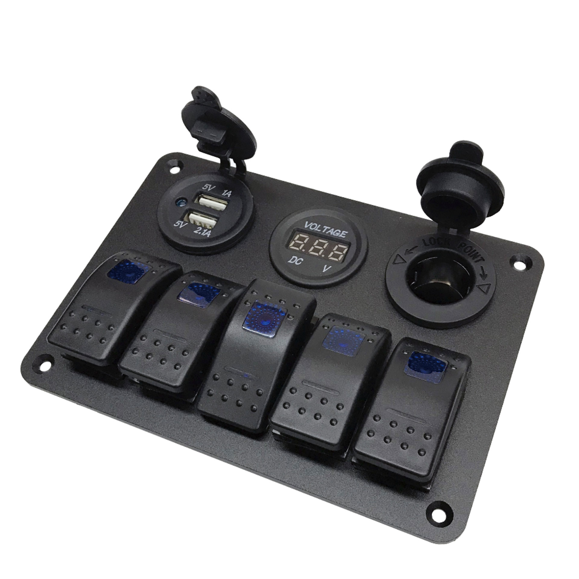 キャンピングカーやキッチンカ―、レーシングカーなどのパーツとして便利なアイテム。複数のスイッチを集中してセットできるパネルタイプとなります。