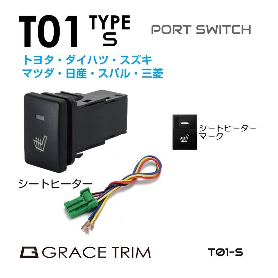 トヨタ車用 空ポートスイッチ シートヒーターマーク(T01タイプ)YE発光