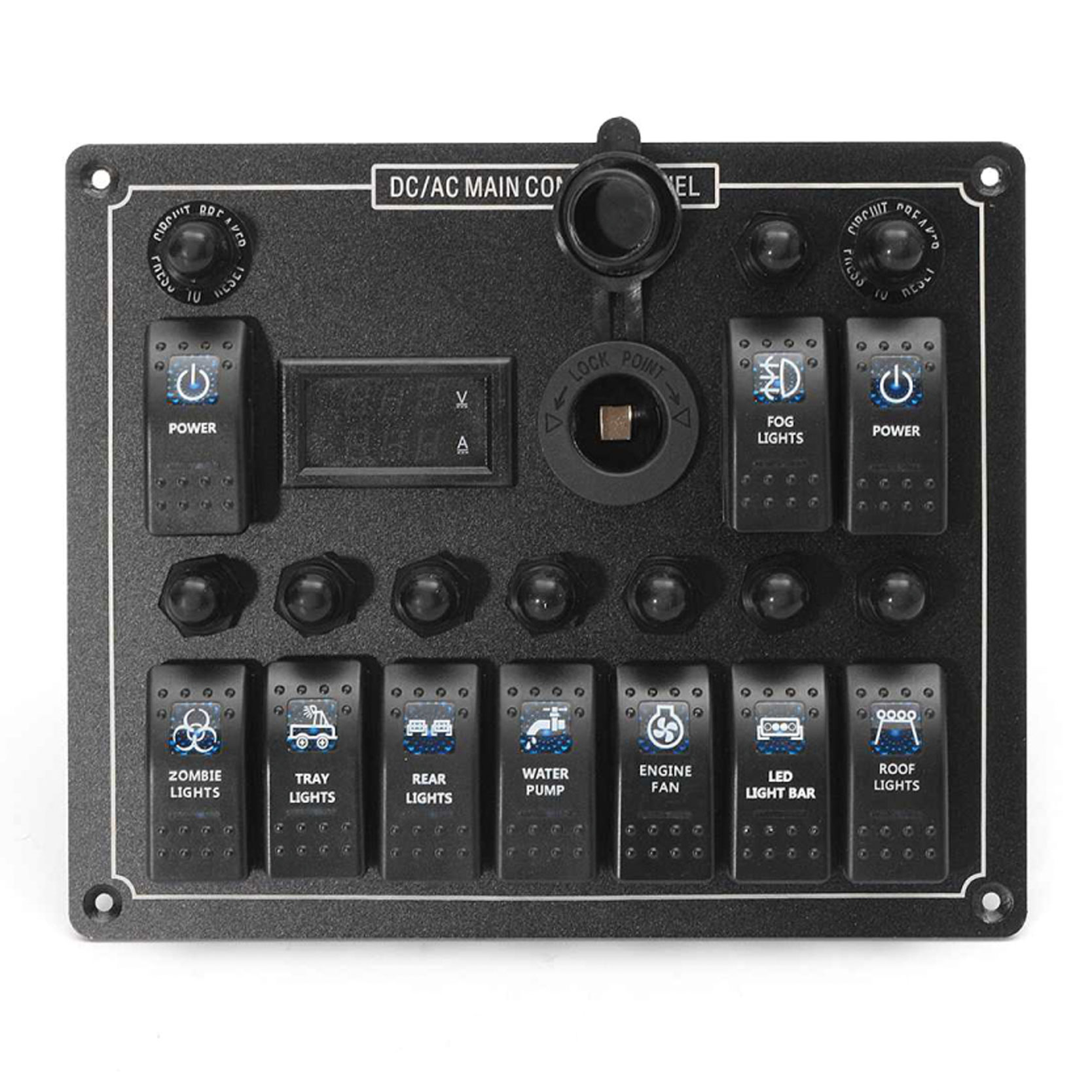 4連ソケットパネル(シガーソケット/USB/電圧計/スイッチ)